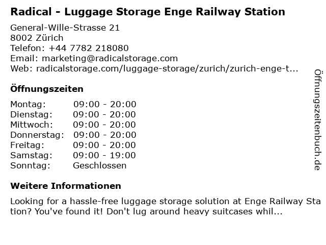 Branchen & Suchbegriffe zu Radical - Luggage Storage Enge Railway Station:enge, luggage, luggage storage, luggage storage near me, radical, railway, station, storage |