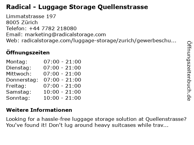 Branchen & Suchbegriffe zu Radical - Luggage Storage Quellenstrasse:luggage, luggage storage, luggage storage near me, quellenstrasse, radical, storage |