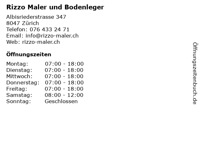 | Öffnungszeiten Rizzo Maler und Bodenleger in Zürich anzeigen | |