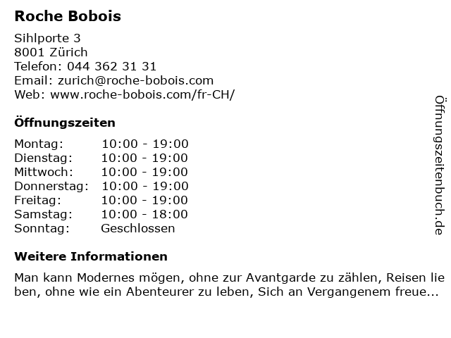 | Öffnungszeiten Roche Bobois in Zürich anzeigen | |
