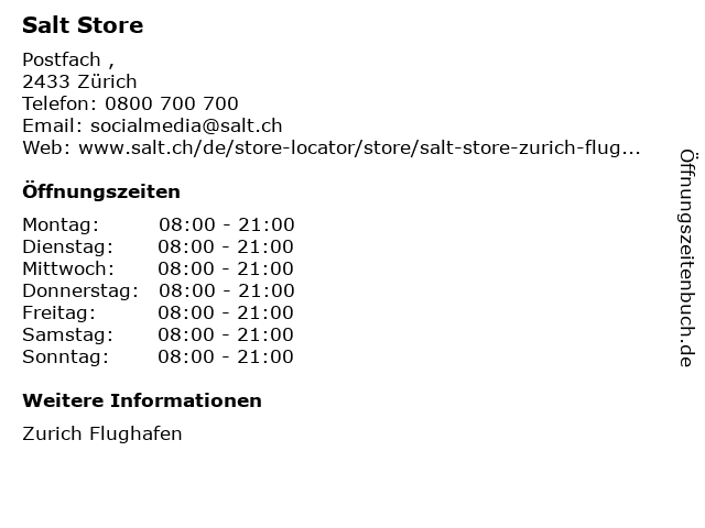| Öffnungszeiten Salt Store in Zürich anzeigen | |