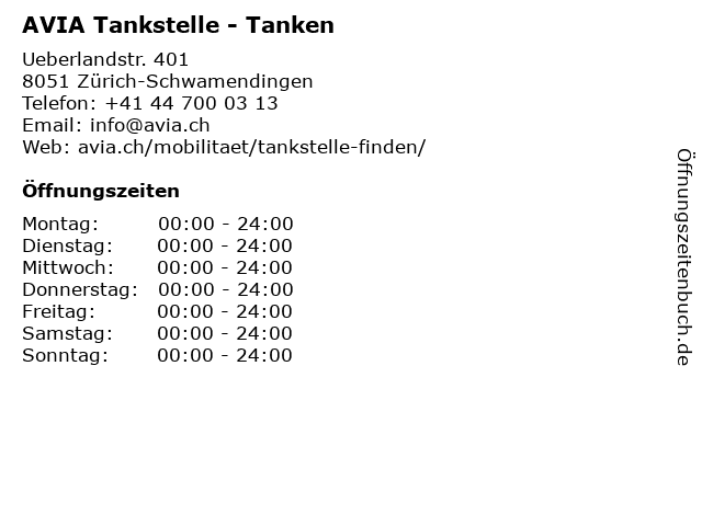 AVIA Tankstelle - Tanken in Zürich-Schwamendingen: Telefonnummer, Öffnungszeiten und Adresse