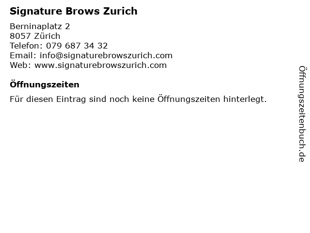 | Öffnungszeiten Signature Brows Zurich in Zürich anzeigen | |