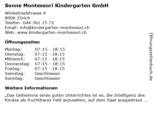 Branchen & Suchbegriffe zu Sonne Montessori Kindergarten GmbH:agentur für kinderbetreuung, kindergarten, kindertagesstätte, montessori, sonne, sprachschule |