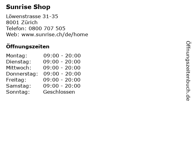 Sunrise Shop in Zürich | Telefonnummer, Öffnungszeiten und Adresse