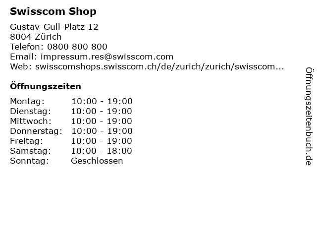 | Öffnungszeiten Swisscom Shop in Zürich anzeigen | |