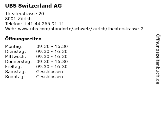 | Öffnungszeiten UBS Switzerland AG in Zürich anzeigen | |