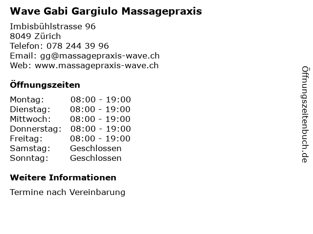 Branchen & Suchbegriffe zu Wave Gabi Gargiulo Massagepraxis:gabi, gargiulo, kosmetikstudio, massagepraxis, nagelstudio, wave, wellness |