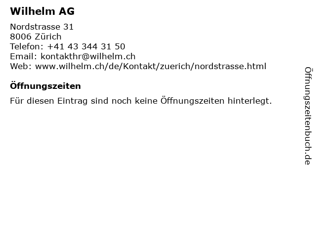 | Öffnungszeiten Wilhelm AG in Zürich anzeigen | |