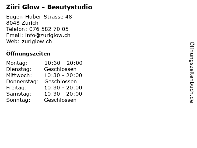 | Öffnungszeiten Züri Glow - Beautystudio in Zürich anzeigen | |