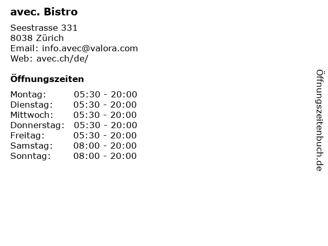 Öffnungszeiten avec. Bistro in Zürich anzeigen