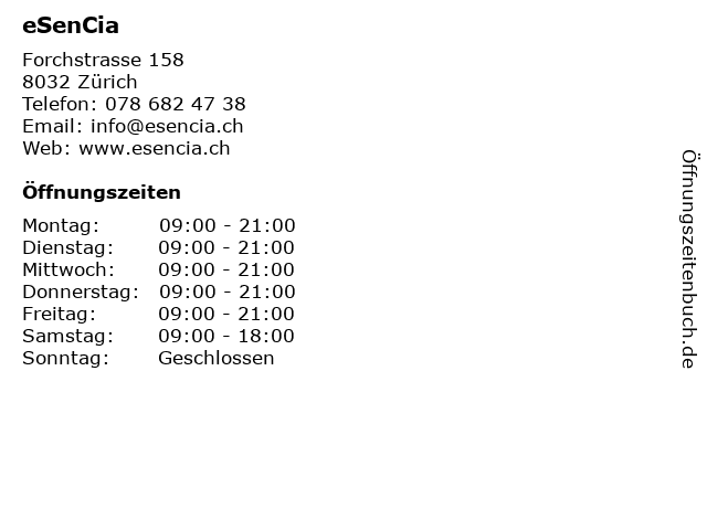 eSenCia in Zürich: Telefonnummer, Öffnungszeiten und Adresse