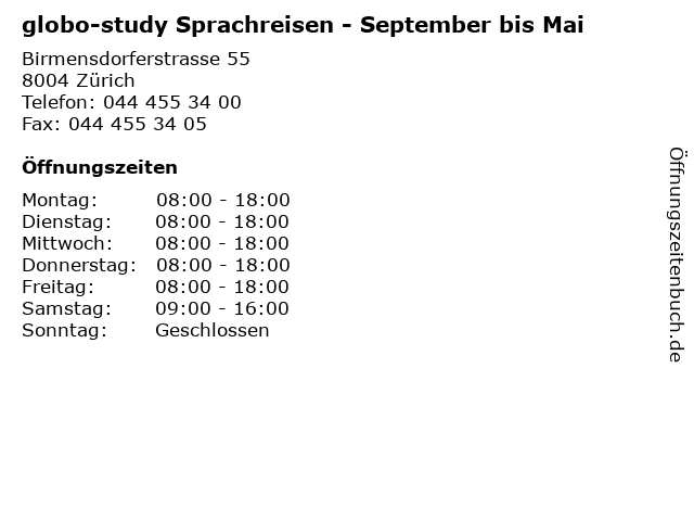 1 globo-study Sprachreisen - Juni bis August (Entfernung: 0,00 km) Birmensdorferstrasse 55, 8004 Zürich 6 Restaurant Badi Oerlikon - April bis Oktober (Entfernung: 4,93 km) Wallisellenstrasse 100, 8050 Zürich |