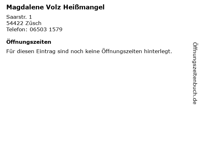 | Öffnungszeiten Magdalene Volz Heißmangel in Züsch anzeigen | |