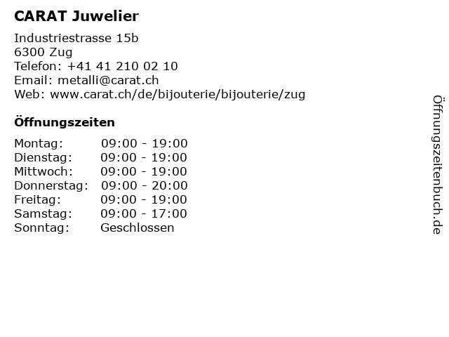 | Öffnungszeiten CARAT Juwelier in Zug anzeigen | |