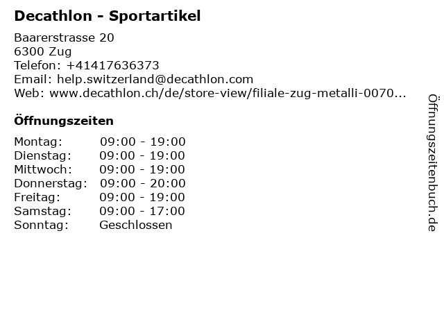| Öffnungszeiten Decathlon - Sportartikel in Zug anzeigen | |