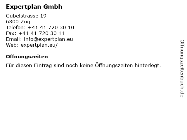 | Öffnungszeiten Expertplan Gmbh in Zug anzeigen | |