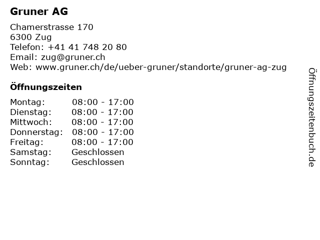 | Öffnungszeiten Gruner AG in Zug anzeigen | |