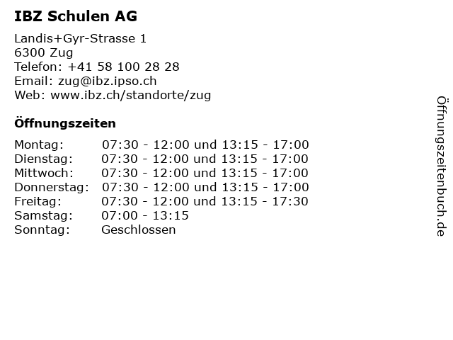 | Öffnungszeiten IBZ Schulen AG in Zug anzeigen | |