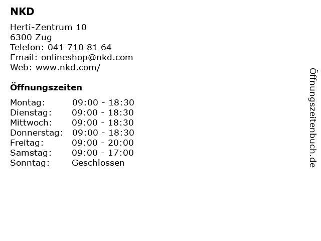 | Öffnungszeiten NKD in Zug anzeigen | |