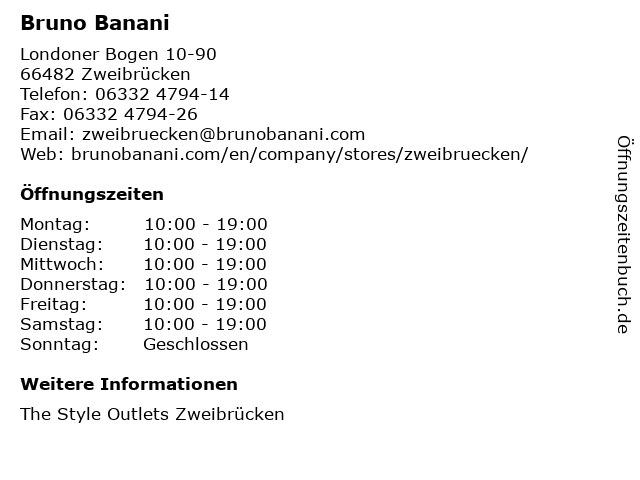 | Öffnungszeiten Bruno Banani in Zweibrücken anzeigen | |