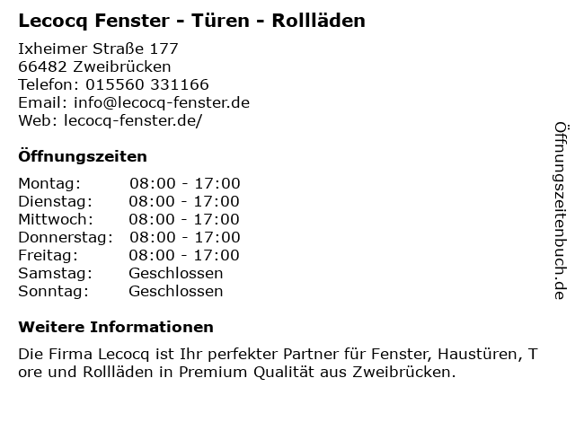 Branchen & Suchbegriffe zu Lecocq Fenster - Türen - Rollläden:anbieter für fenster, anbieter für türen, fenster, lecocq, rollläden, türen |