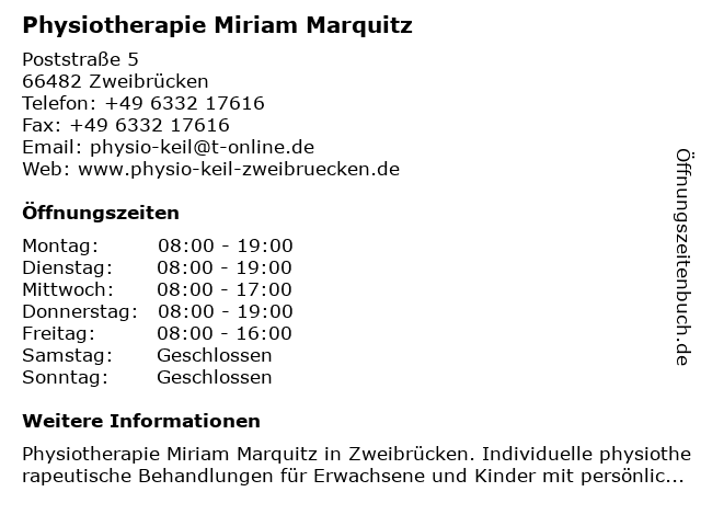 Branchen & Suchbegriffe zu Physiotherapie Miriam Marquitz:atemtherapie, babygymnastik, beckenbodengymnastik, bindegewebsmassage, bobath, cmp, hausbesuche, heißluftgerät, krankengymnastik, kältetherapie, lymphdrainage, manuelle therapie, marquitz, massage, miriam, physiotherapeut, physiotherapie, physiotherapie zweibrücken, pnf, schlingentisch, vojta |