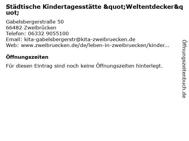 | Städtische Kindertagesstätte "Weltentdecker" anrufen | |