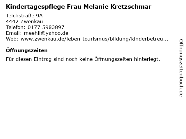 | Kindertagespflege Frau Melanie Kretzschmar anrufen | |