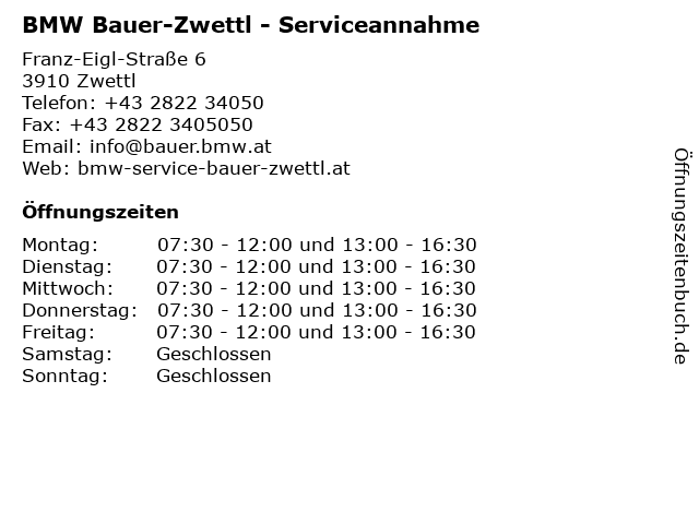 2 BMW Bauer-Zwettl - Teile & Zubehör und Werkstatt (Entfernung: 0,00 km) Franz-Eigl-Straße 6, 3910 Zwettl 6 |