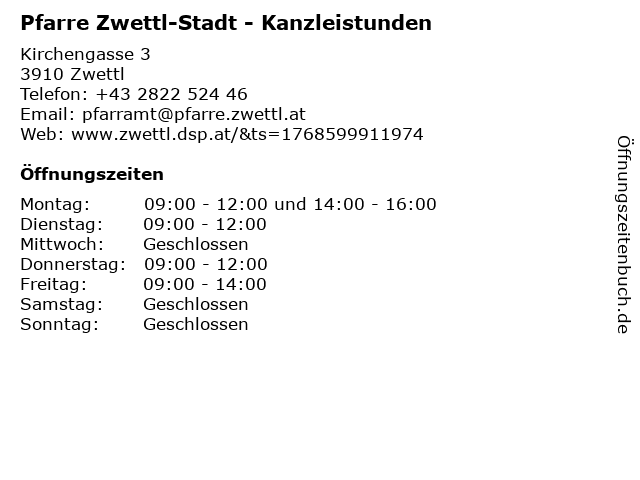 Branchen & Suchbegriffe zu Pfarre Zwettl-Stadt - Kanzleistunden:glaube, kanzlei, kanzleistunden, kirchgemeinde, pfarramt, pfarre, religion, stadt, zwettl |
