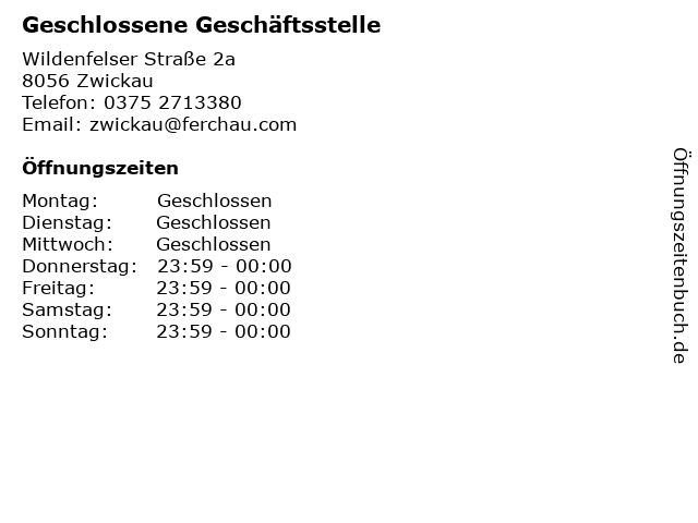 | Öffnungszeiten Geschlossene Geschäftsstelle in Zwickau anzeigen | |