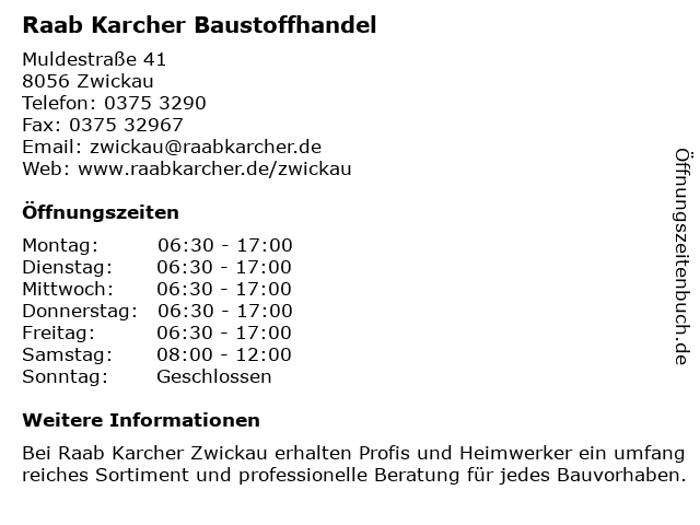 | Öffnungszeiten Raab Karcher Baustoffhandel in Zwickau anzeigen | |