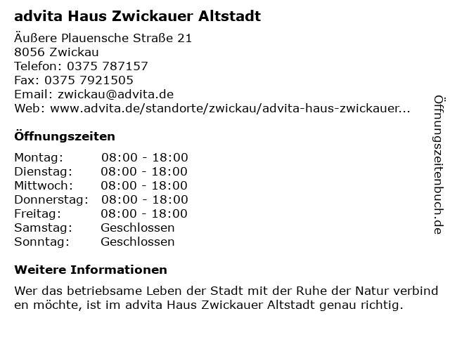Branchen & Suchbegriffe zu advita Haus Zwickauer Altstadt:advita, altstadt, betreutes wohnen, haus, seniorenheim, seniorenwohnheim, tagesbetreuung für erwachsene, zwickauer |