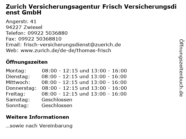 Branchen & Suchbegriffe zu Zurich Versicherungsagentur Frisch Versicherungsdienst GmbH:ansprechpartner, assicurazione, assurance, austria, berater, beratung, bezirksdirektion, büro, dienstleistung, frisch, service, thomas, versicherungen, versicherungs, versicherungsagentur, versicherungsdienst, zurich |