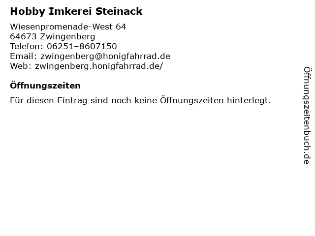 | Öffnungszeiten Hobby Imkerei Steinack in Zwingenberg anzeigen | |