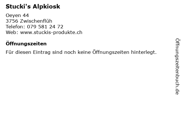 | Öffnungszeiten Stucki's Alpkiosk in Zwischenflüh anzeigen | |