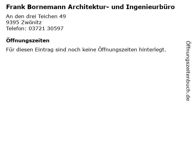 | Frank Bornemann Architektur- und Ingenieurbüro anrufen | |