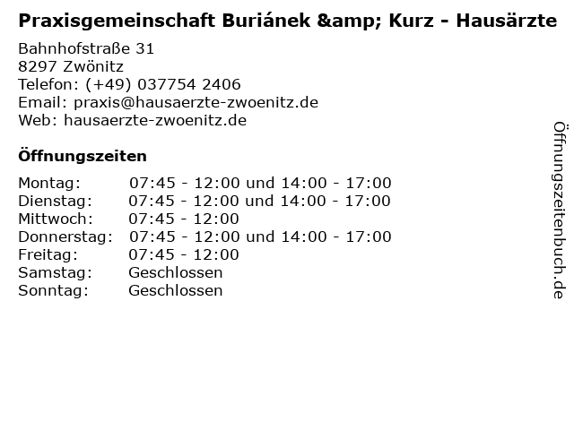 Branchen & Suchbegriffe zu Praxisgemeinschaft Buriánek & Kurz - Hausärzte:allgemeinmedizin, arzt, behandlung, buriánek, doktor, hausarzt, hausärzte, kurz, praxisgemeinschaft |